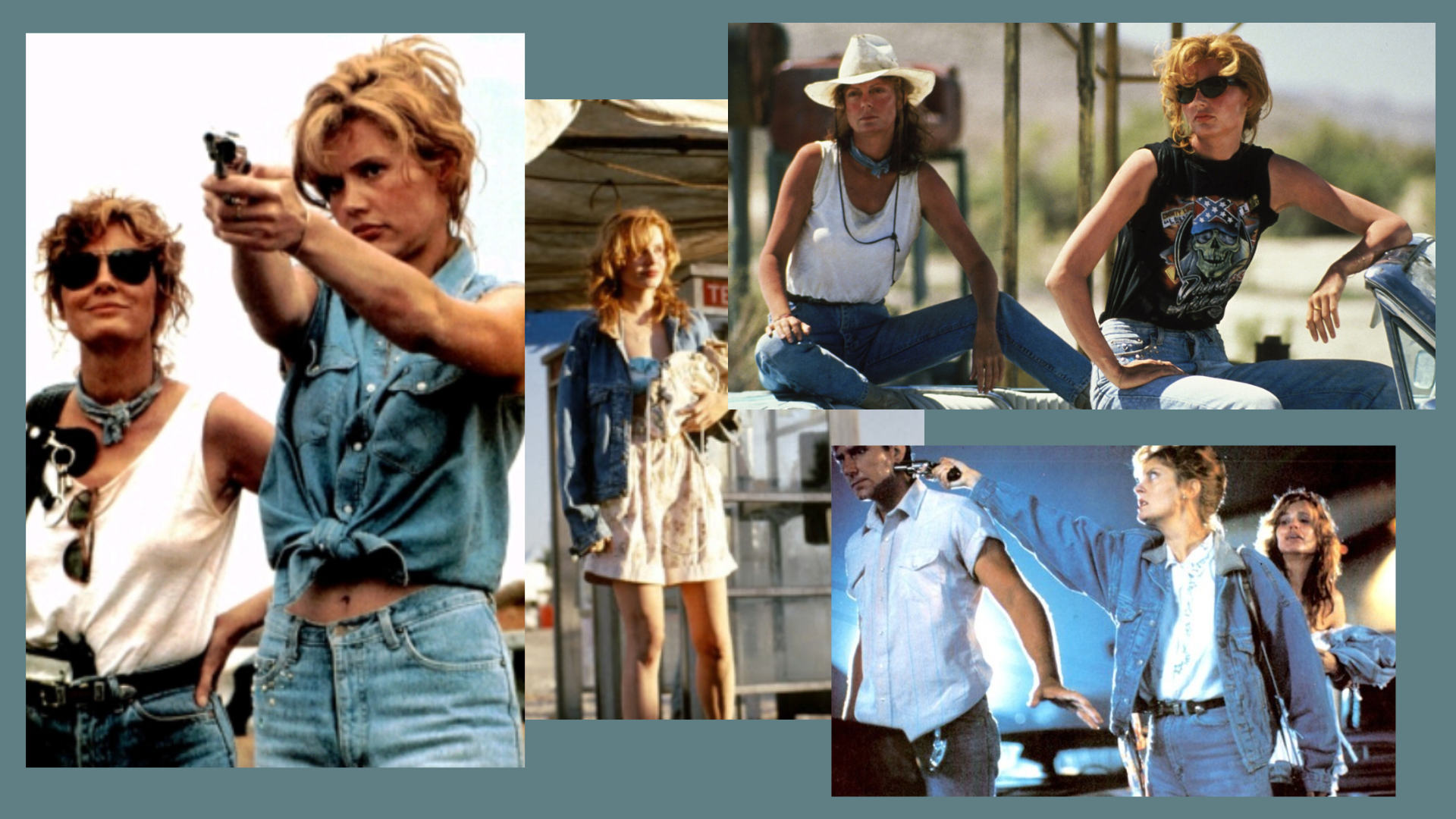 The utilitarian and simplicity of the jeans and a white top Louise is wearing by the end of the movie with nothing but a blue handkerchief tied around her neck as an accessory and her hair free flowing was divine to me. These women became their own heroes of their own story. They freed themselves of feminine ideals and restraints and instead embraced their women empowerment and strength.