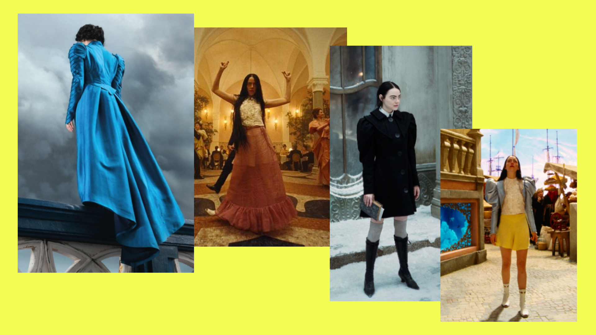 I think I may have let out an audible gasp when I saw the opening shot of Poor Things at the coat she is wearing on the bridge. The shoulder detail and colour were incredibly jolting, in the most amazing way and set me up with what to expect for the rest of the movie. After the first opening scene we are then led into a 25 minute black and white section of the movie. This forces you to focus purely on shape, silhouette and stitch detailing. At this point of the movie the character Bella is in her infant stage, she is shown in childlike dresses, gathered puff sleeves and silk shorts. These silhouettes are fun, whimsical and practical.